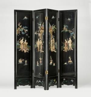 Laque de coromandel à décor d'oiseaux et branches fleuries sur f...