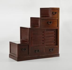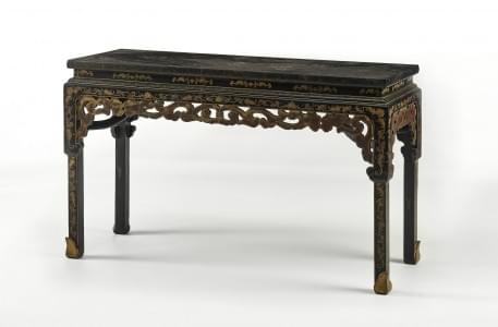 Bois laqué noir et or, ceinture ajourée, 80x130x45 cm