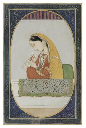 Jeune femme écrivant une lettre, pigments sur papier, 29x20 cm