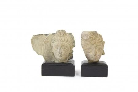 900. Deux têtes bouddhas dont une avec mandorle, Gandhara, Ier-Ve s a...