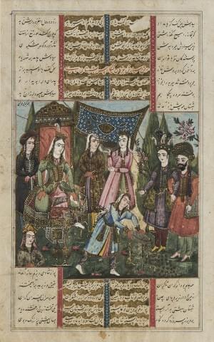 902. Deux pages de livre illustrées de miniatures, Iran, époque Qajar...