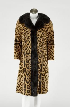 Fourrure de léopard, col et bordure en vison noir, intérieur en...