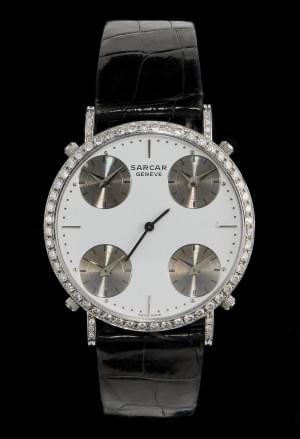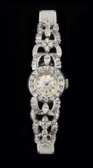 Cadran émaillé blanc, aiguilles dorées serties de roses de diama...