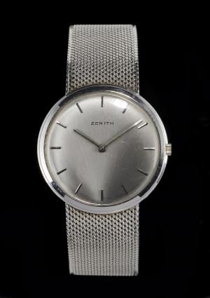 Cadran gris, aiguilles et index bâtons noirs, or gris 750, 26x21...