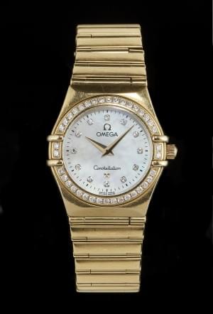 Cadran nacré, aiguilles dorées, index à points sertis de diamant...