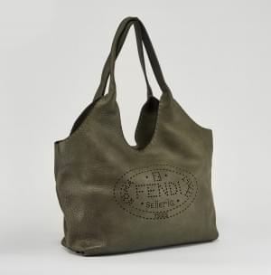 Cuir épi vert, fermeture Eclair, 25x42x20 cm