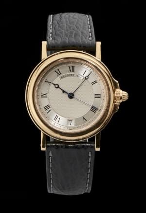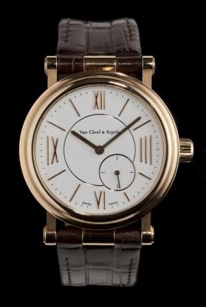 Cadran blanc, aiguilles et chiffres romains noirs, or 750, D 31...