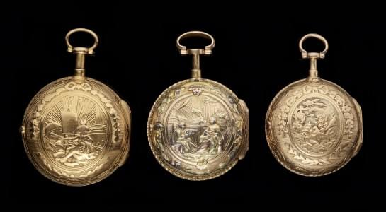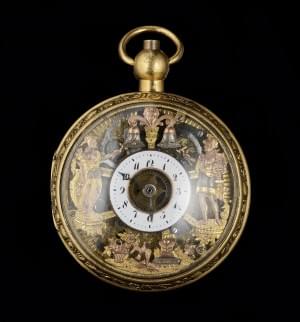 77. Montre de poche avec répétition des quarts et à automate érotiqu...
