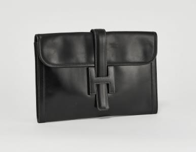 Cuir lisse noir, garniture en métal doré, 23x35x13 cm
