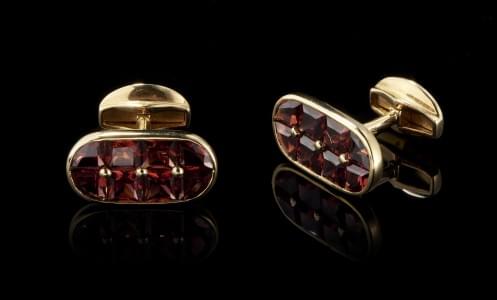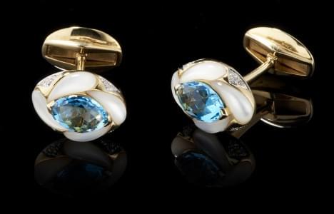 92. Boutons de manchette sertis d'une topaze bleue taille marquise f...