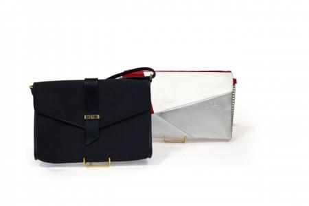 L'une façon cuir lisse rouge, blanc, gris et argenté, bandoulièr...