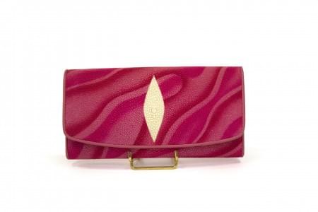 Galuchat rose centré d'un motif blanc, intérieur en tissu beige,...