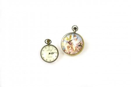 Cadrans émaillés blancs et crème, aiguilles bleues et dorées, ch...