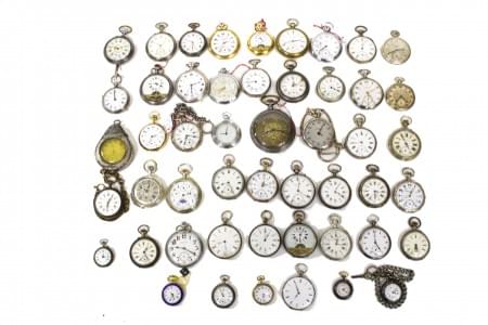 3095. Lot de 45 montres de poche, notamment signées H.B Benson, Illino...