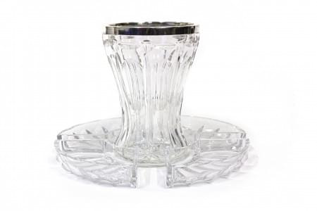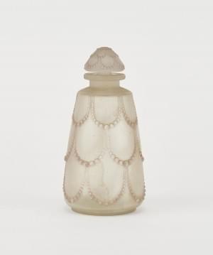 Verre blanc moulé-pressé opalescent et argent, H 8,5 cm. Modèle...
