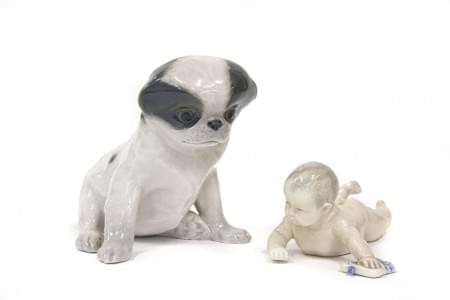 4119. Chiot et bébé, deux figurines, Danemark, Royal Copenhagen