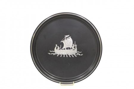 A motif de personnage drapé dansant, WMF, dinanderie, D 18 cm