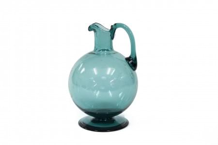 Pichet, pâte de verre orangée, signé, H 17 cm