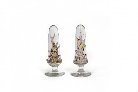 Paire de bougeoirs tourbillon, verre, atelier Schlaepfer, D 18 c...