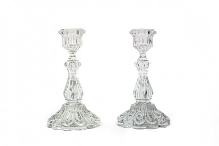 4143. Paire de flambeaux en verre moulé pressé dans le goût de Baccara...