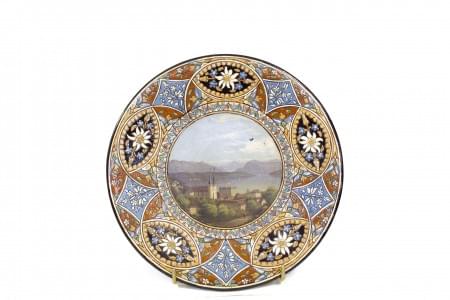 Céramique à décor émaillé et peint d'une vue de Lucerne, D 30 cm