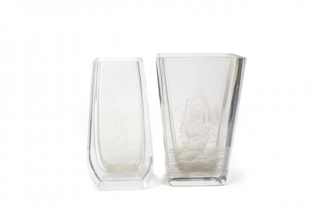Verre gravé, l'un à décor d'un voilier et l'autre à décor d'un e...