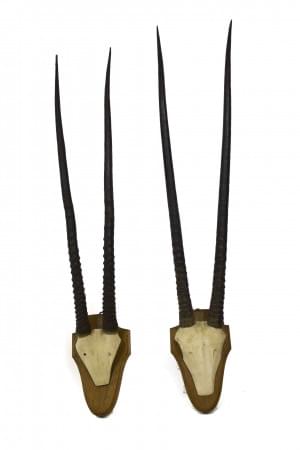 Deux massacres montés sur écussons, H 95 et 100 cm