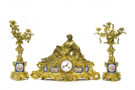 Régule et métal doré, porcelaine, H 35 et 44 cm