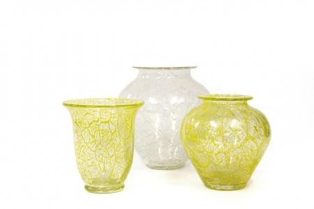 Ensemble de trois bougeoirs tourbillon, verre, atelier Schlaepfe...