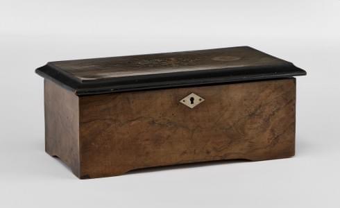 A décor incrusté de bois fruitier, poivre noirci, laiton et ivo...