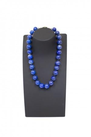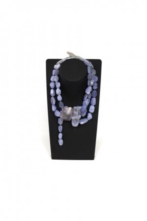 3203. Monies Copenhagen, Collier de perles d'agate bleue polies centré...