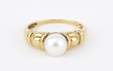 3210. Bague godronnée sertie d'une perle