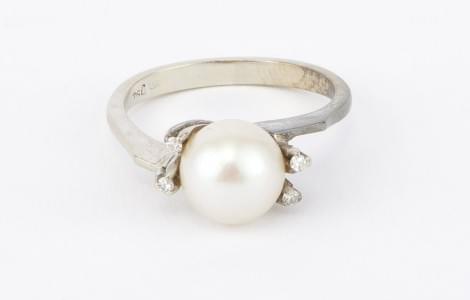 3217. Bague sertie d'une perle rehaussée de diamants