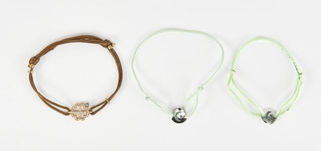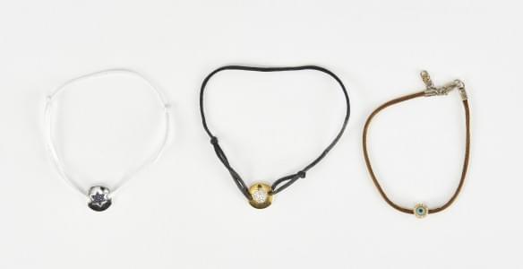 3219. Lot de trois bracelets sur cordon, l'un retenant un motif "œil",...