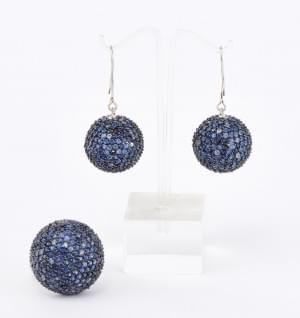 3226. Ensemble d'une bague et de boucles d'oreilles pavées de saphirs