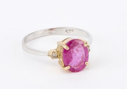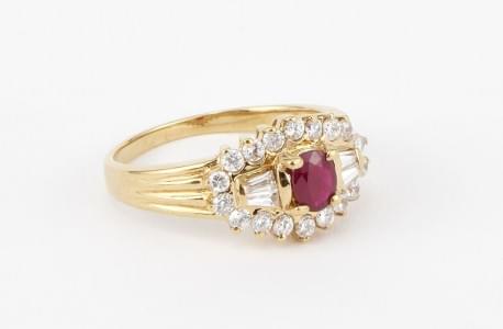 3238. Bague centrée d'un rubis taille ovale entouré d'oxydes de zircon...