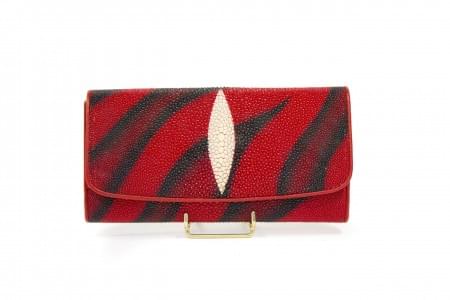 Galuchat zébré rouge et noir, intérieur en tissu beige, estampil...
