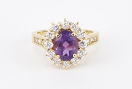 3250. Bague sertie d'une améthyste taille ovale (env. 2 ct) entourée d...