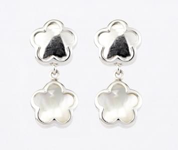 3257. Clous d'oreilles retenant des motifs de fleurs sertis de nacre