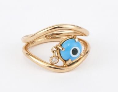 3258. Bague ajourée centrée d'une perle de verre "œil" retenant un pet...