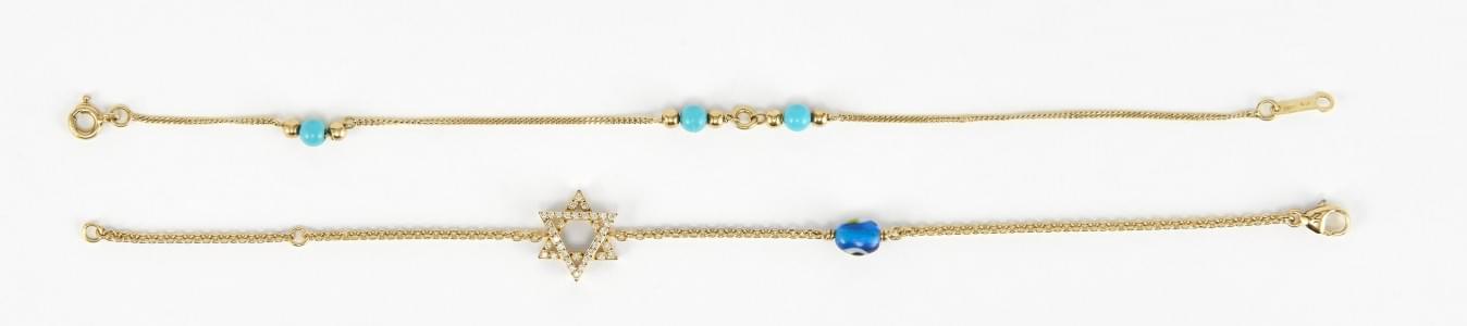 3259. Lot de deux bracelets, l'un retenant une étoile de David sertie...
