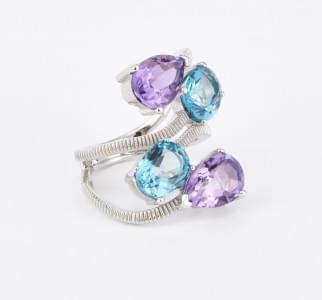 3260. 7264*Bague ajourée sertie de deux améthystes taille poire (env....