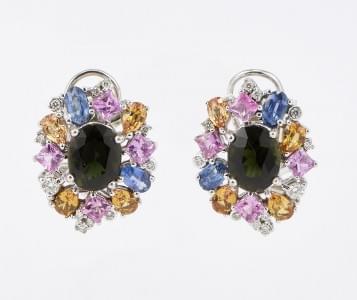 3263. Boucles d'oreilles serties de tourmalines vertes entourées de sa...