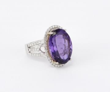 3264. Bague sertie d'une améthyste taille ovale (env. 11 ct) entourée...