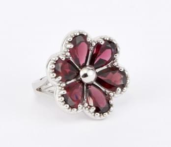 3271. 7267*Bague fleur aux pétales sertis de rhodolites taille poire