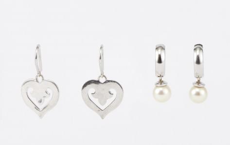 Or gris 750, H 2,5 cm, 3 g. On joint une paire de créoles retena...