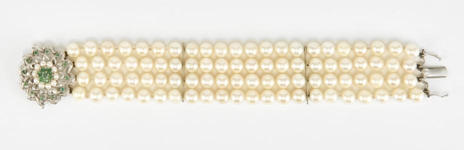 3281. Bracelet multi-rangs de perles terminé par un fermoir serti d'ém...