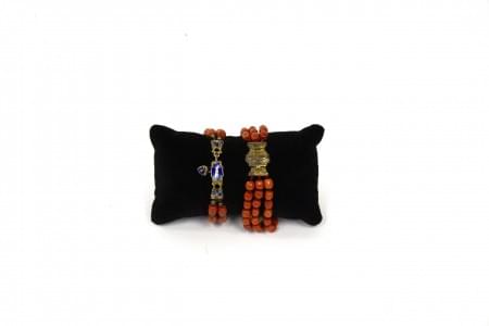 3283. Lot de deux bracelets retenant des rangs de perles de corail fac...