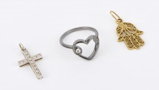 Or noirci 750. On joint une croix sertie de diamants et un pende...