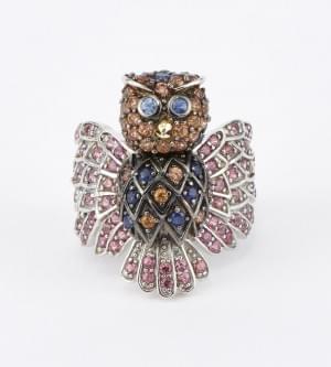 3295. 7245*Bague à motif de chouette pavée de saphirs et saphirs de co...